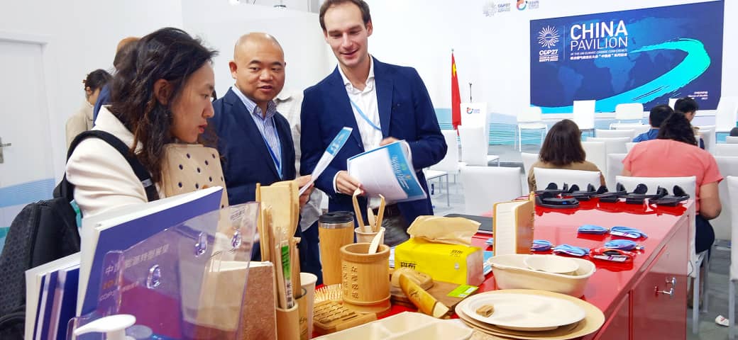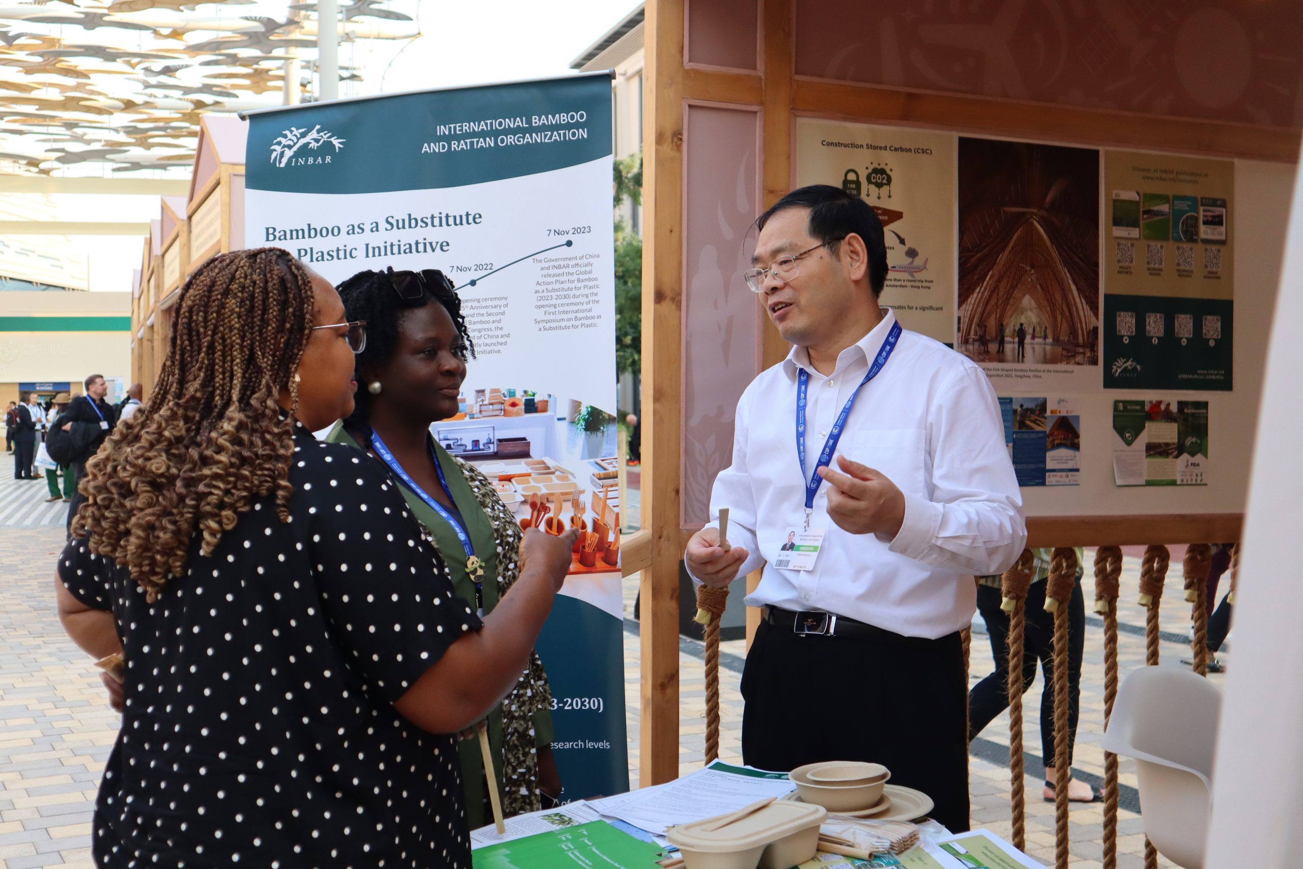 INBAR booth at COP 28 received delegates from around the world, eager to learn the role of bamboo in the fight against climate change.