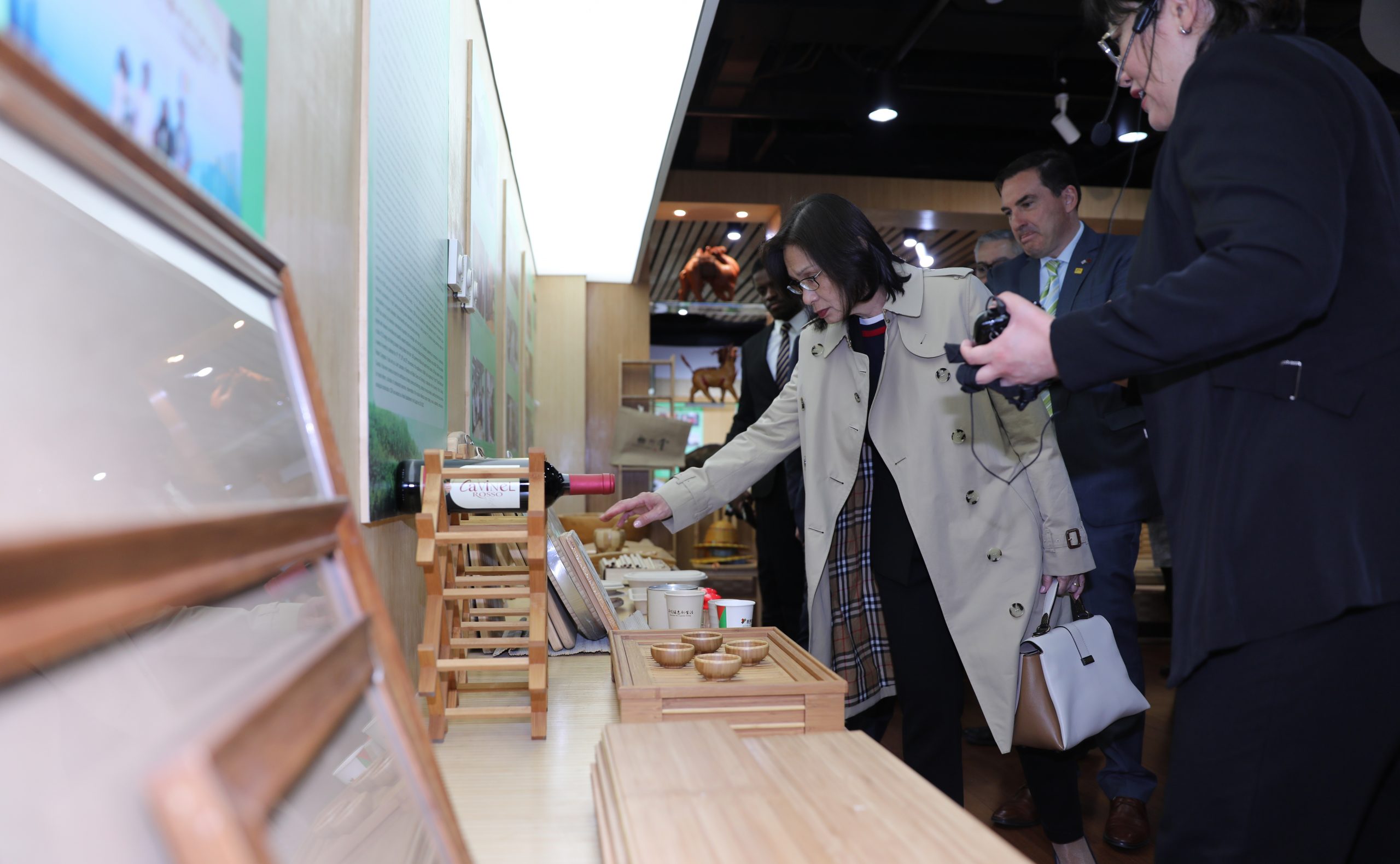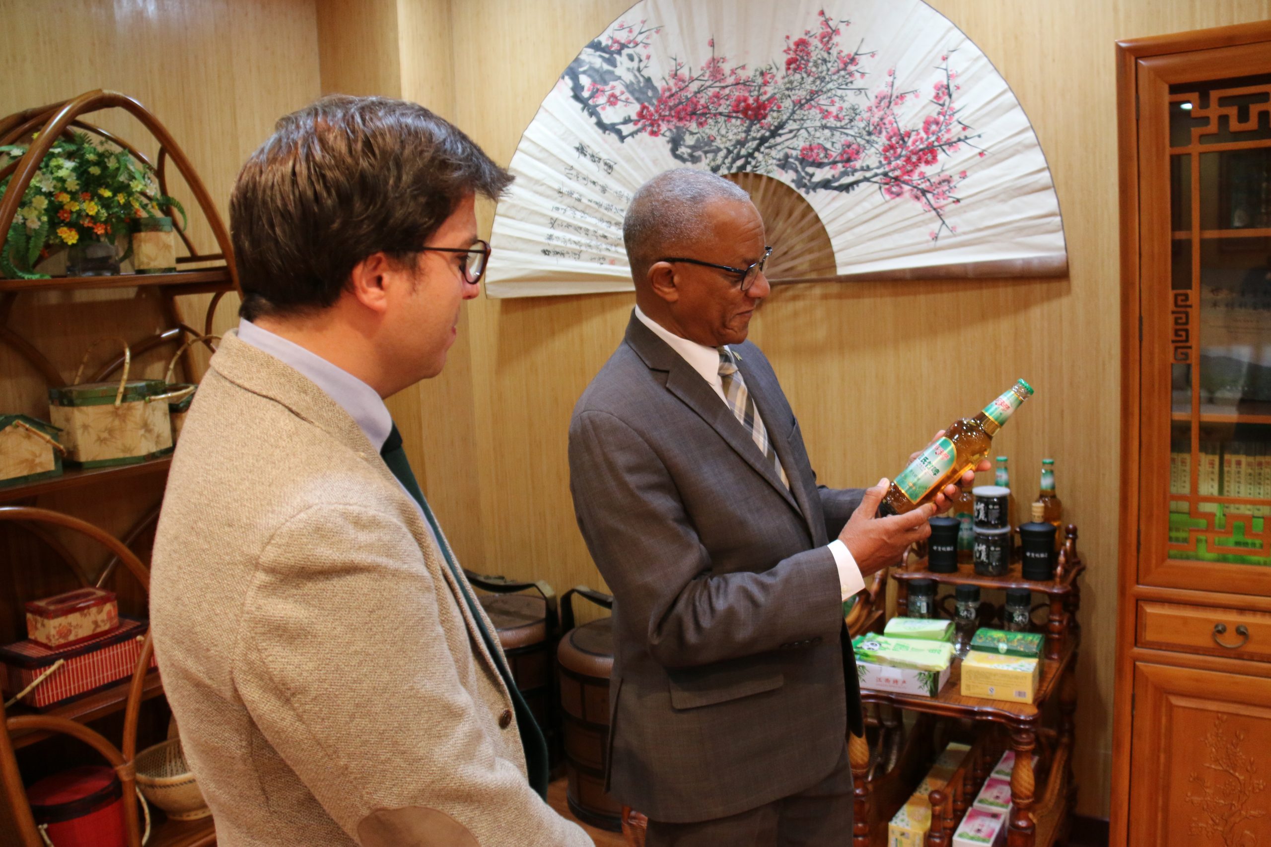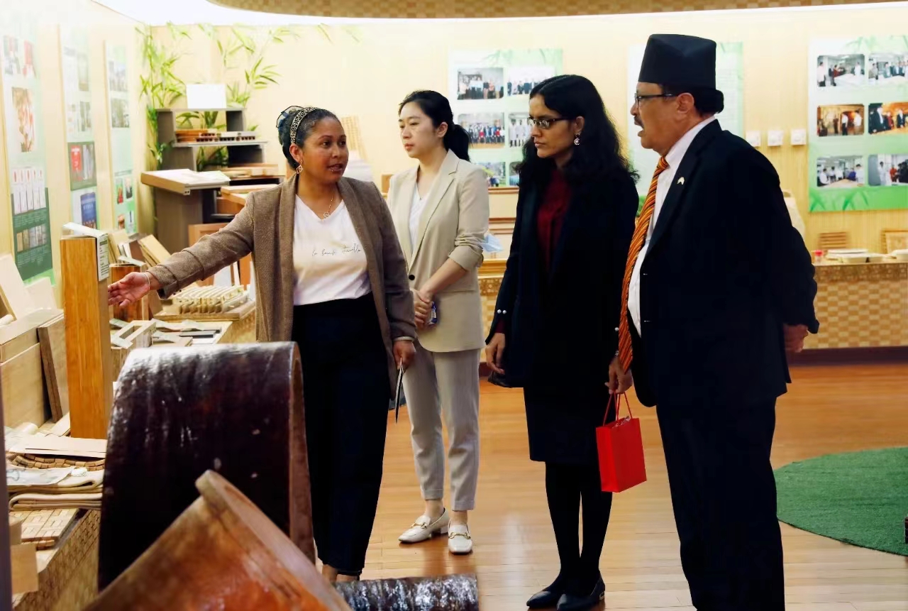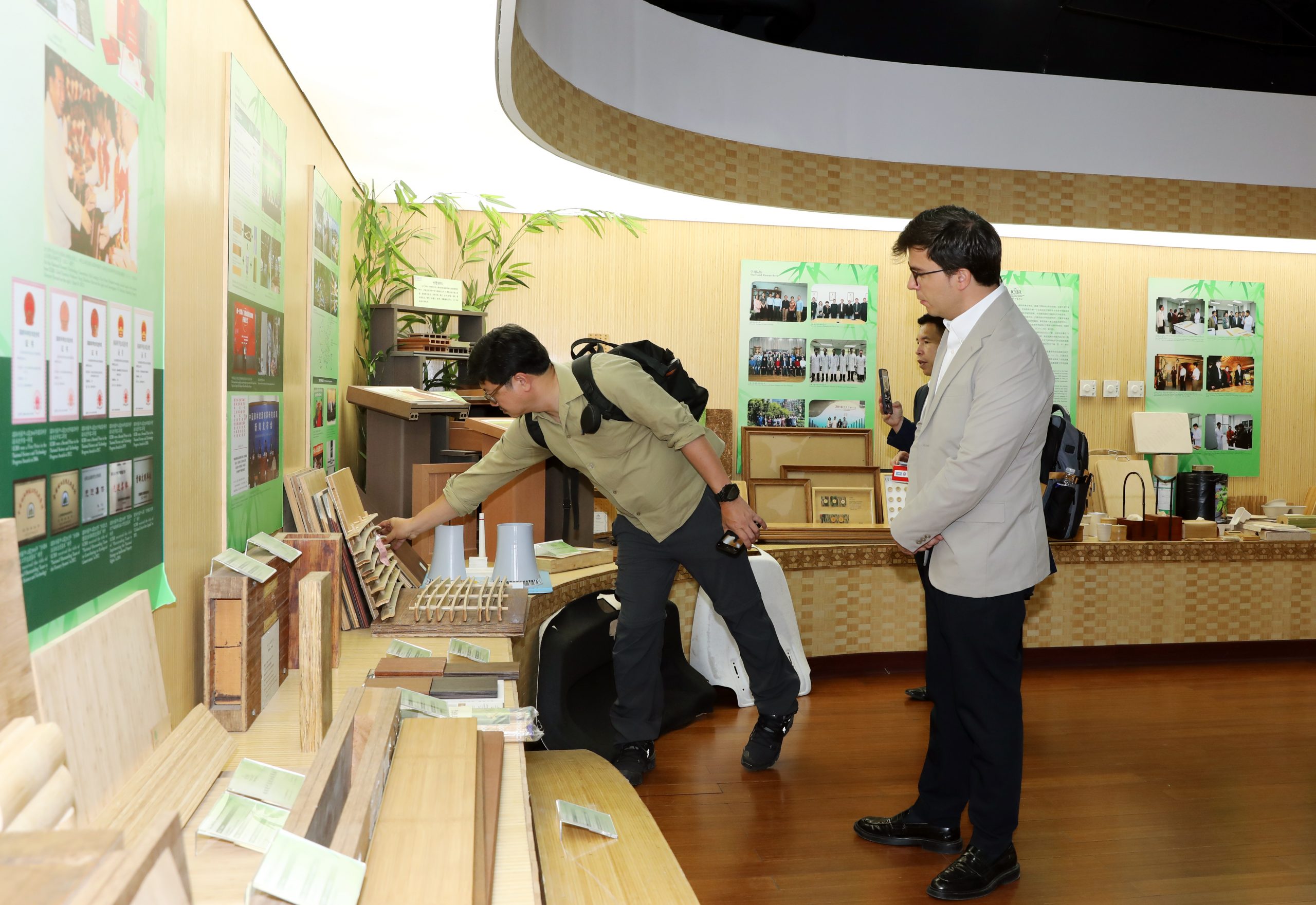 H.E. Mr. Arthur Williams, Ambassador of Jamaica to China, learned about bamboo beverages and more in the Bamboo and Rattan Showroom.