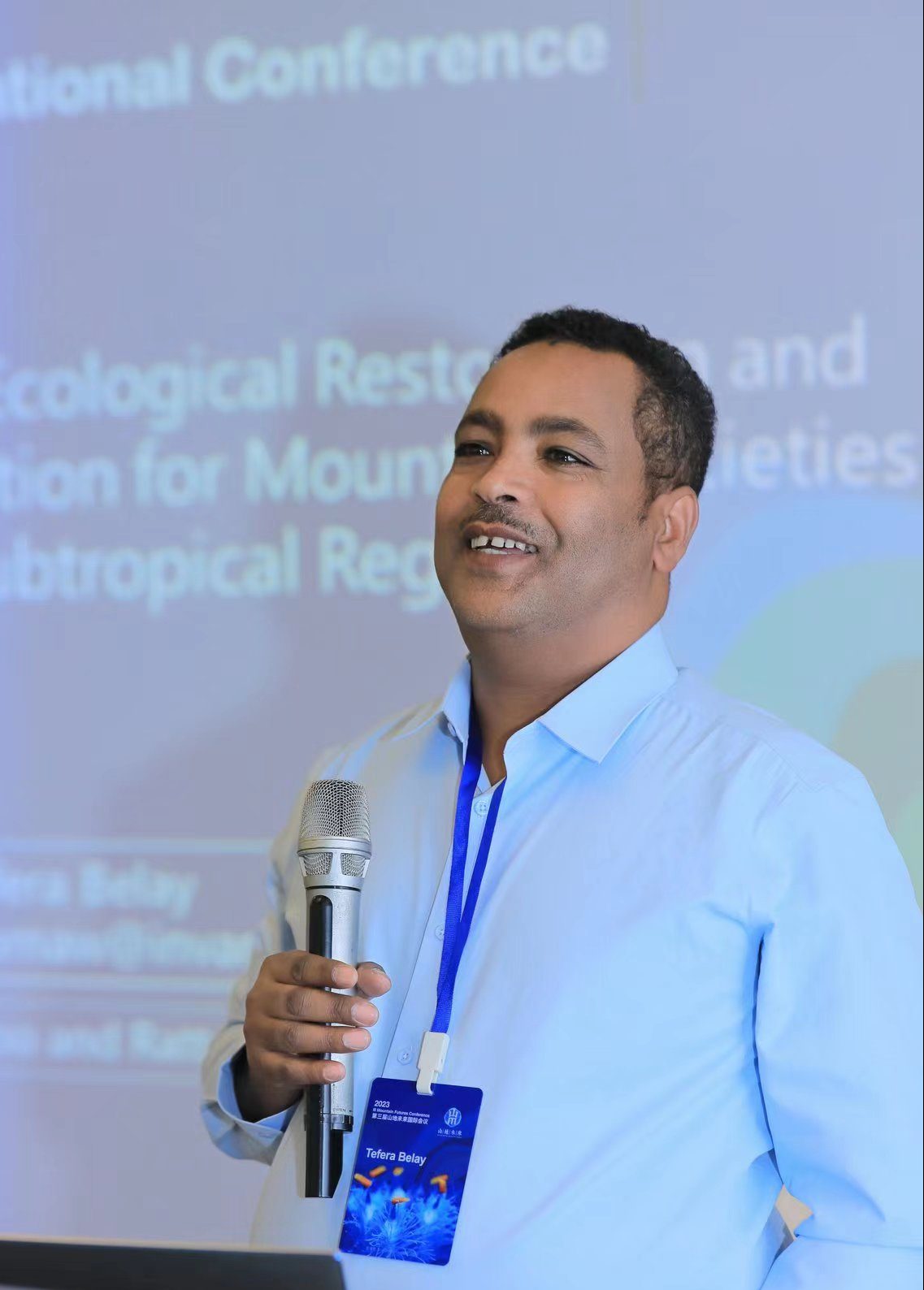 Tefera Belay, INBAR Program Development Officer, presents on bamboo in tropical and subtropical regions at the Third Mountain Futures Conference.