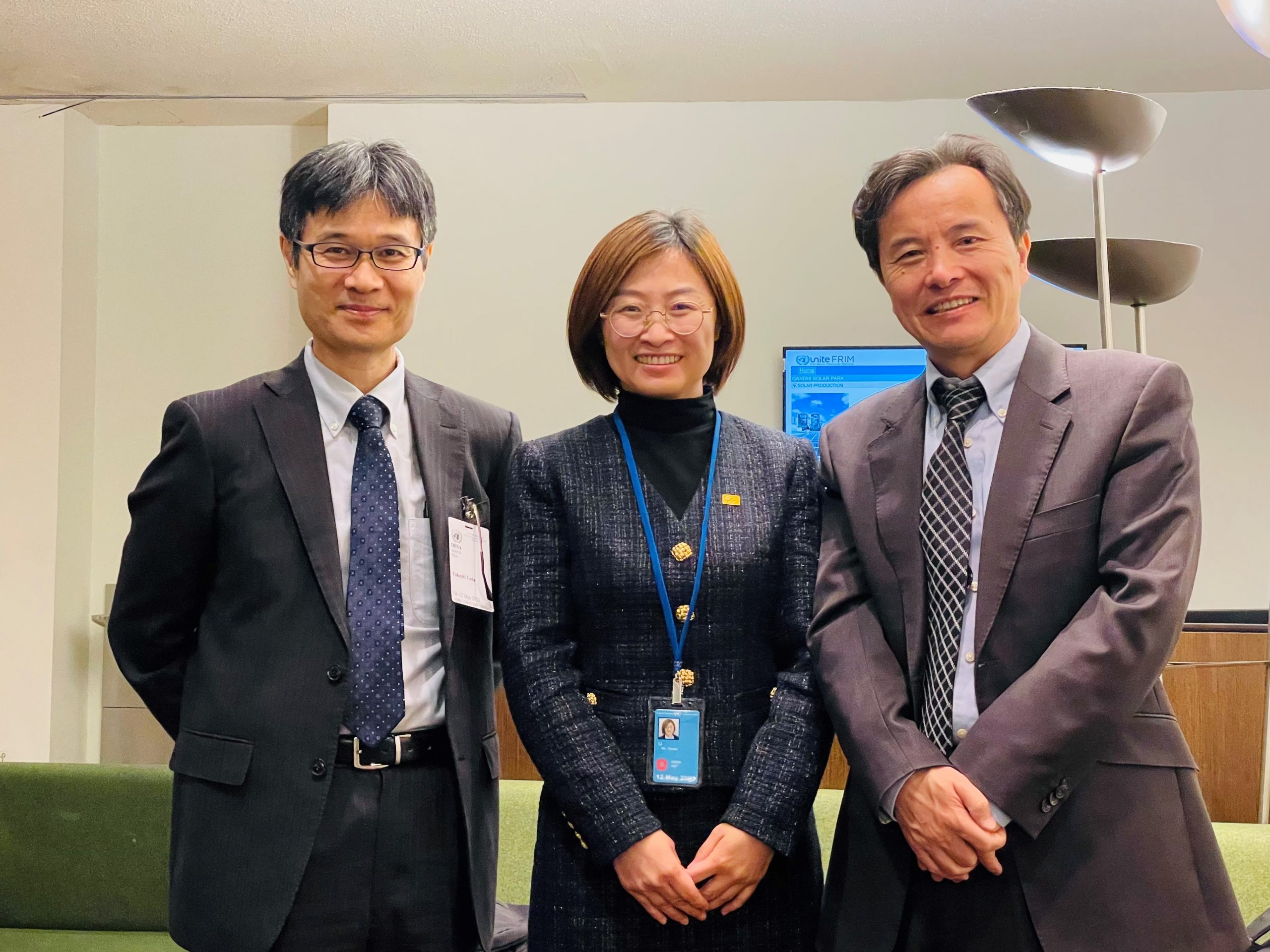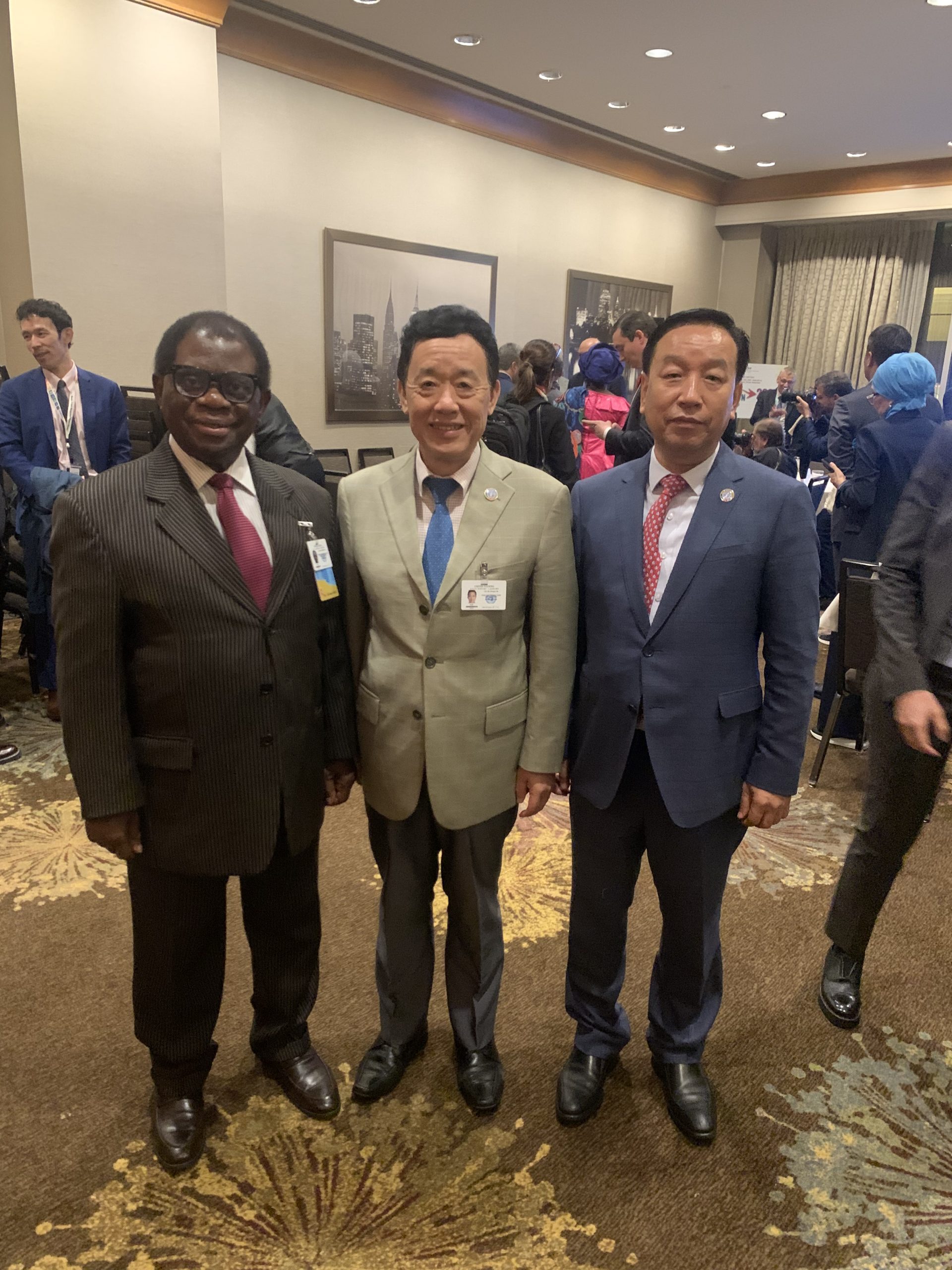 INBAR DG Ali Mchumo (left) meets with FAO DG Qu Dongyu (middle) and FAO Forestry Director Wu Zhimin (right) at 2023 SDG Summit in New York.