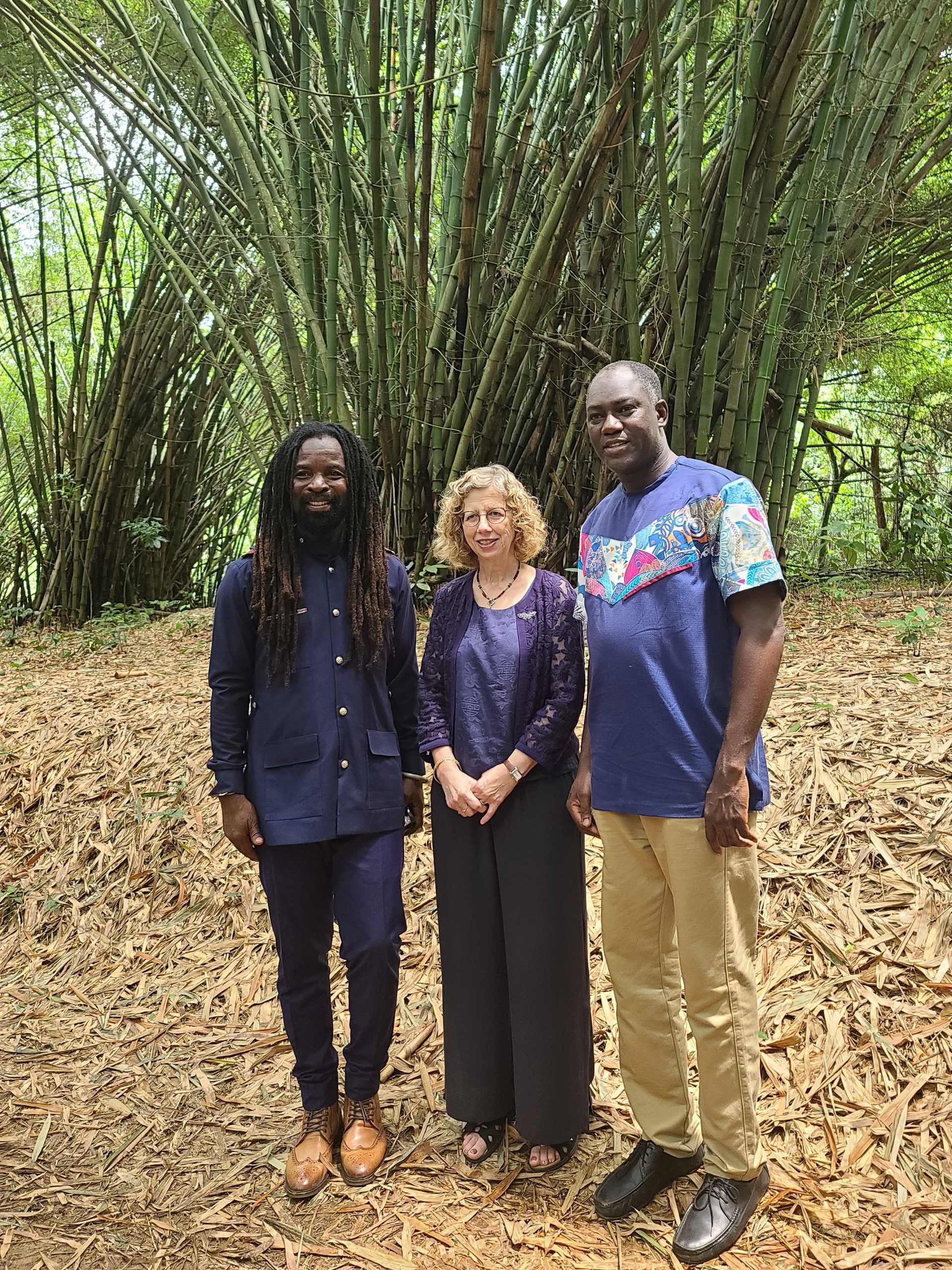 INBAR and bamboo highlighted for World Environment Day at the Dehiafleur Nature Reserve in Abidjan, Cote D’Ivoire. Left to right: Rocky Dawuni, UNEP Goodwill Ambassador; Inger Andersen, UNEP Chief; Michael Kwaku, INBAR WARO Director.