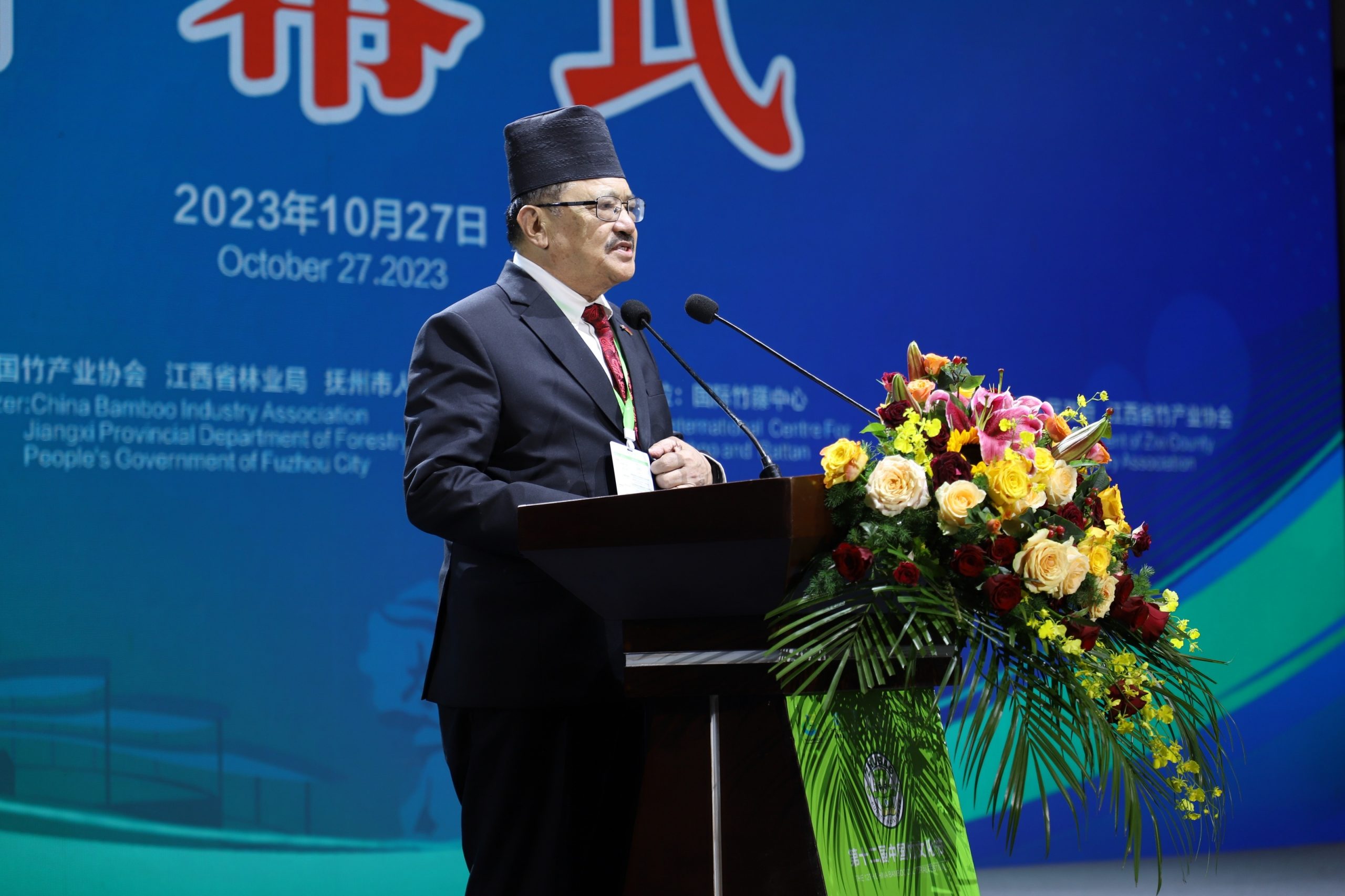H.E. Mr. Bishnu Pukar Shrestha, Chair Representative of the INBAR Council, spoke at the 12th China Bamboo Cultural Festival.