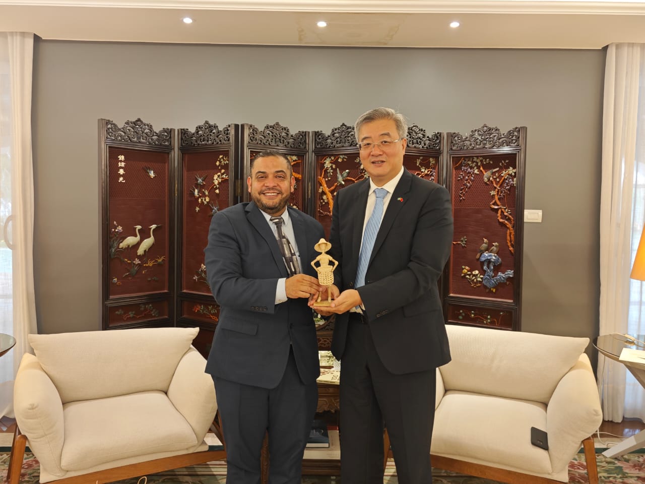 H.E. Mr. Khamis Omar, Ambassador of Tanzania to China (left) met with INBAR Director General Ali Mchumo (right) at INBAR HQ on 28 November 2023.
